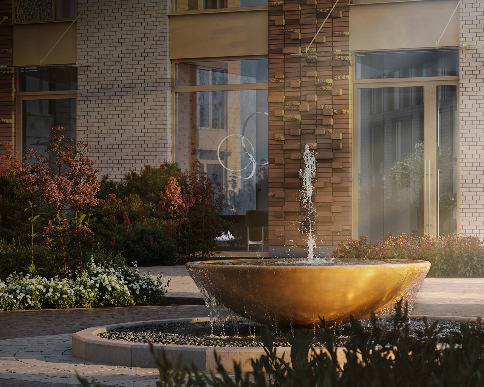Двор с изысканным ландшафтным оформлением